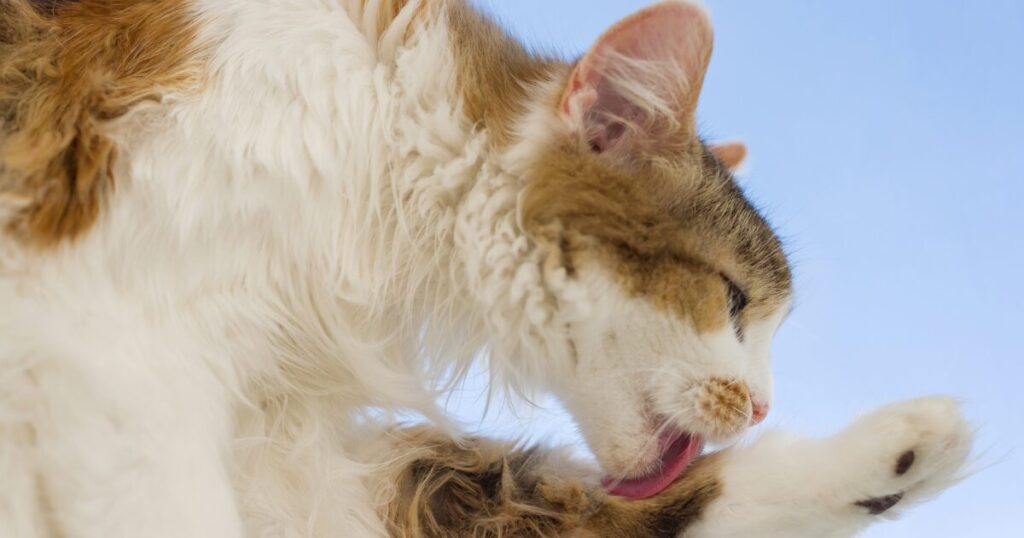 起きている時間の約3割をセルフグルーミング(毛づくろい)に費やしていると言われるほどで、ザラザラした突起がある舌をブラシのように使い、被毛の汚れや抜け毛を自分で器用に取り除いています。